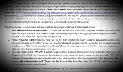 PT Topindo Tegaskan Gandi Bukan Distributor Resmi TOP 1, Minta Ralat Pemberitaan