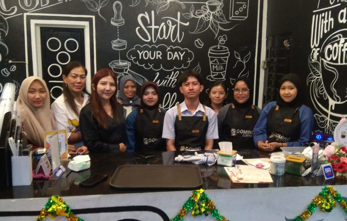 Domino Coffee yang mulai launching awal Februari 2026 ini memprioritaskan tenaga kerja dari masyarakat sekitar. Mayoritas karyawan merupakan anak-anak lokal yang baru lulus SMA.