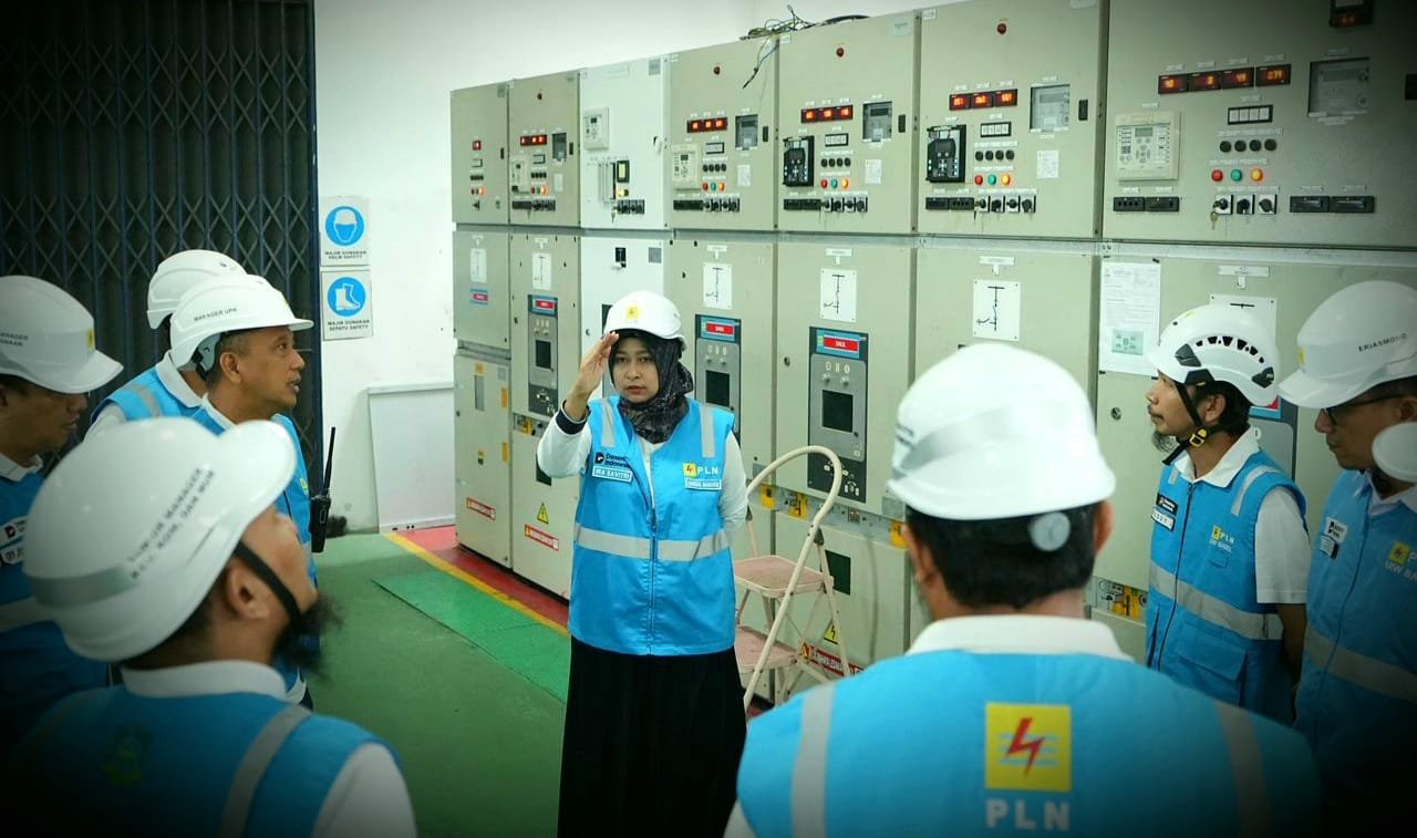 General Manager PLN UIW Babel, Ira Savitri memberikan arahan kepada jajaran personel siaga saat melakukan pengecekan kesiapan peralatan dan sistem kelistrikan dalam rangka siaga Imlek 2026. (dok/PLN Babel)