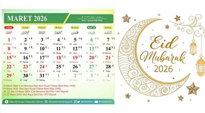 Berdasarkan Surat Keputusan Bersama (SKB) 3 Menteri, Idul Fitri 1447 Hijriah yang diperkirakan jatuh pada 21–22 Maret 2026.