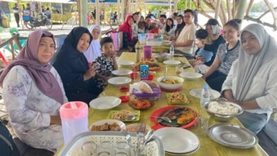 Sejak pagi hingga menjelang sore, kawasan pantai dipenuhi pengunjung yang menikmati liburan bersama keluarga. Anak-anak tampak bermain air di tepian, sementara orang dewasa sibuk berswafoto dan menikmati angin laut yang sejuk.