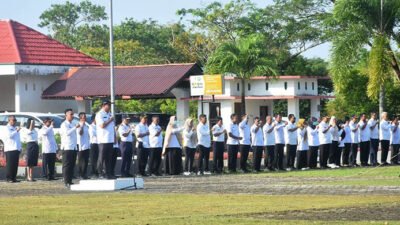 Apel perdana Pemkab Belitung Timur pasca libur panjang Idul Fitri 1447 Hijriah di halaman Kantor Bupati Belitung Timur, Rabu (25/3/2026). (Dok. Diskominfo SP Beltim)